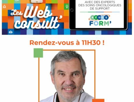 Patients et/ou proches, ne manquez pas votre WebConsult !L'AFSOS (Association Francophone des Soins Oncologiques de Support) vous donne rendez-vous, grâce au soutien de Malakoff Kimanis,...